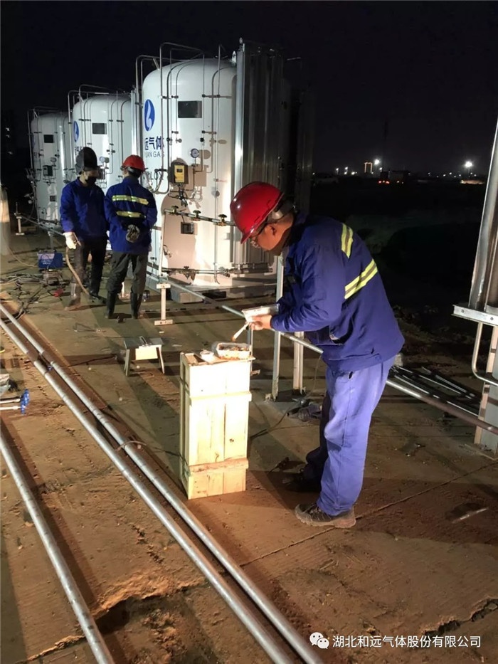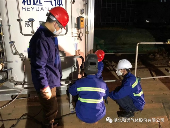 2月1日上午10點(diǎn),隨著大別山醫(yī)院醫(yī)用氧站的建設(shè)材料全部到達(dá),技術(shù)主管周軍和黃石和遠(yuǎn)安全員劉淼帶領(lǐng)項(xiàng)目施工人員立即開(kāi)始施工,他們連續(xù)工作18個(gè)小時(shí)沒(méi)有休息,直至2月2日凌晨4點(diǎn)。