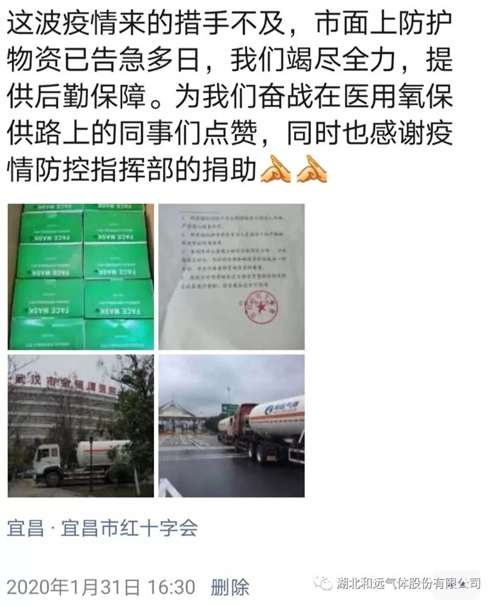 和遠(yuǎn),也將正式列入醫(yī)療物資及援助序列,保證湖北區(qū)域諸多醫(yī)院的醫(yī)用氧配送,甚至火神山,雷神山的醫(yī)用氧保障。希望在這特殊時(shí)刻,大家齊心協(xié)力,萬(wàn)眾一心,克服困難,共抗疫情。