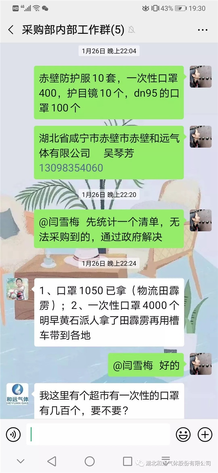 采購(gòu)部人員全力為疫情防護(hù)物資提供保障,他們放棄了過(guò)年假期,從年初二開(kāi)始,不分晝夜,不停地向多方打聽(tīng)防護(hù)資源,為全公司防護(hù)用品提供了保障。同時(shí),為公司醫(yī)用氧建站物資提供貨源保障,通知供應(yīng)商緊急備貨,使得大別山項(xiàng)目物資在兩日內(nèi)配備到位。